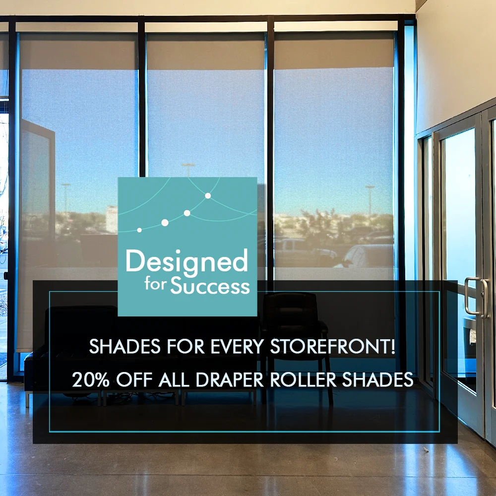 Las Vegas businesses save 20% on Draper commercial roller shades – ideal window treatments for retail stores, office, and workspaces that demand performance and style.