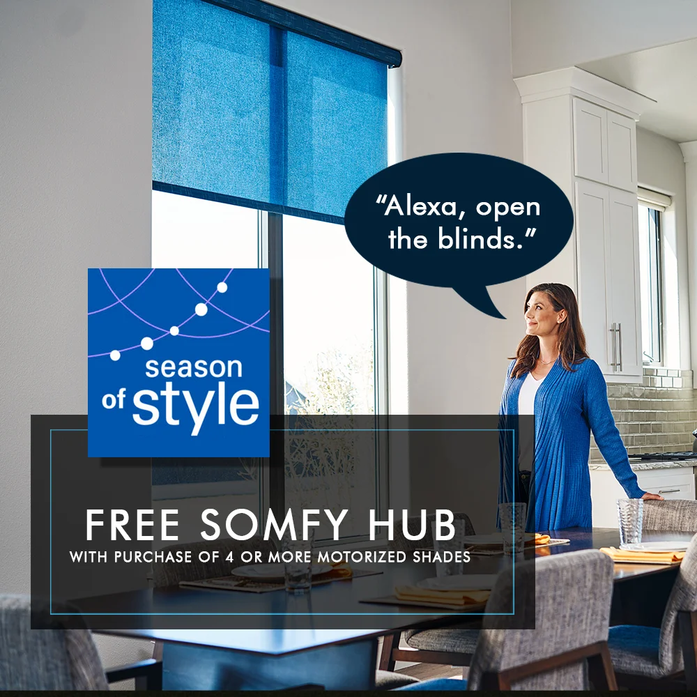 Buy 4+ motorized shades and get a free smart hub-upgrade your shades into Smart Blinds with voice control, scheduling, and app-based remote access.